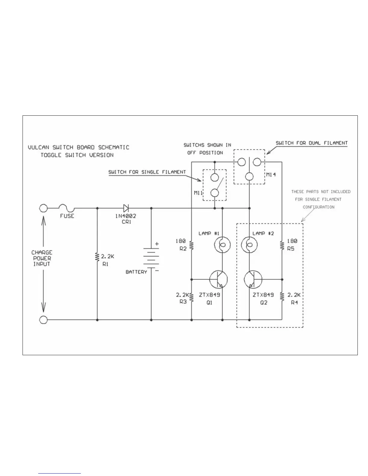 StreamLight FIRE VULCAN - Vulcan Switch Board Schematics; Toggle Switch Version Schematic