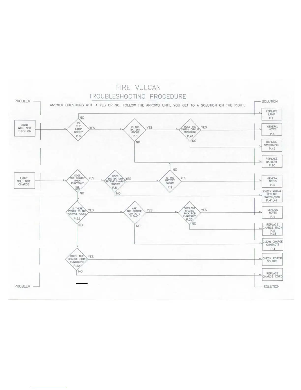 Note : Review the charger note at bottom of Vulcan troubleshooting diagram on