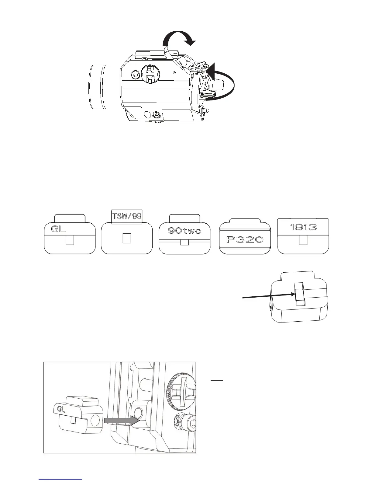 Four polymer rail keys (included) allow the TLR to be attached to a variety of rearms: GL - Glock or
