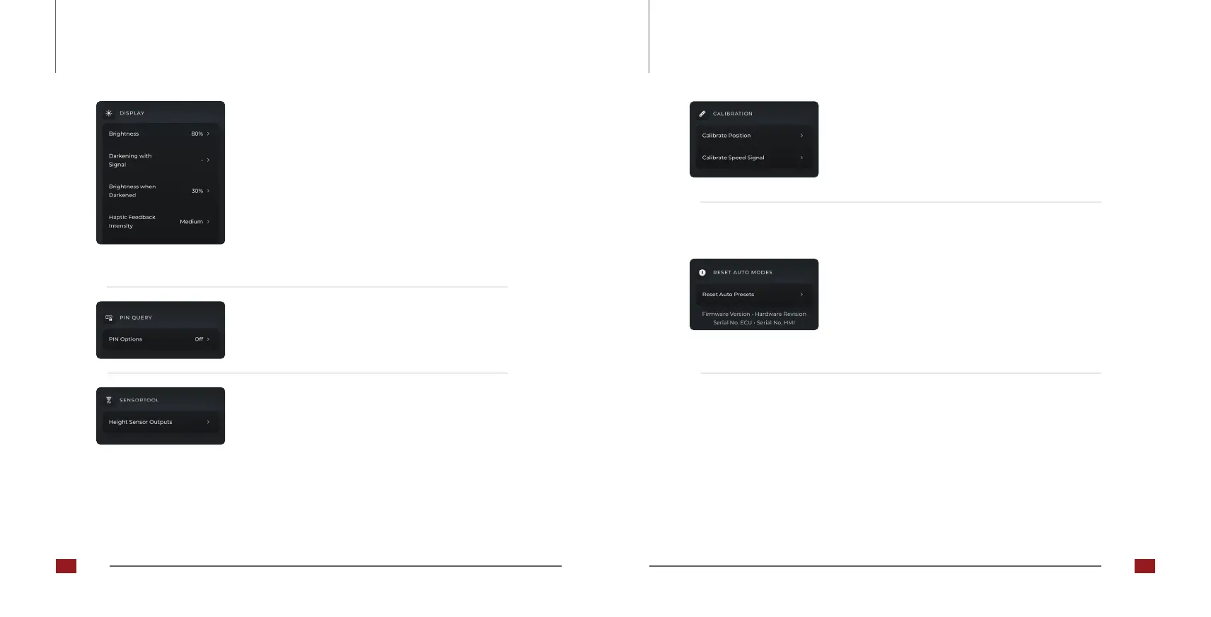• Intensity of the haptic feedback of the touchscreen