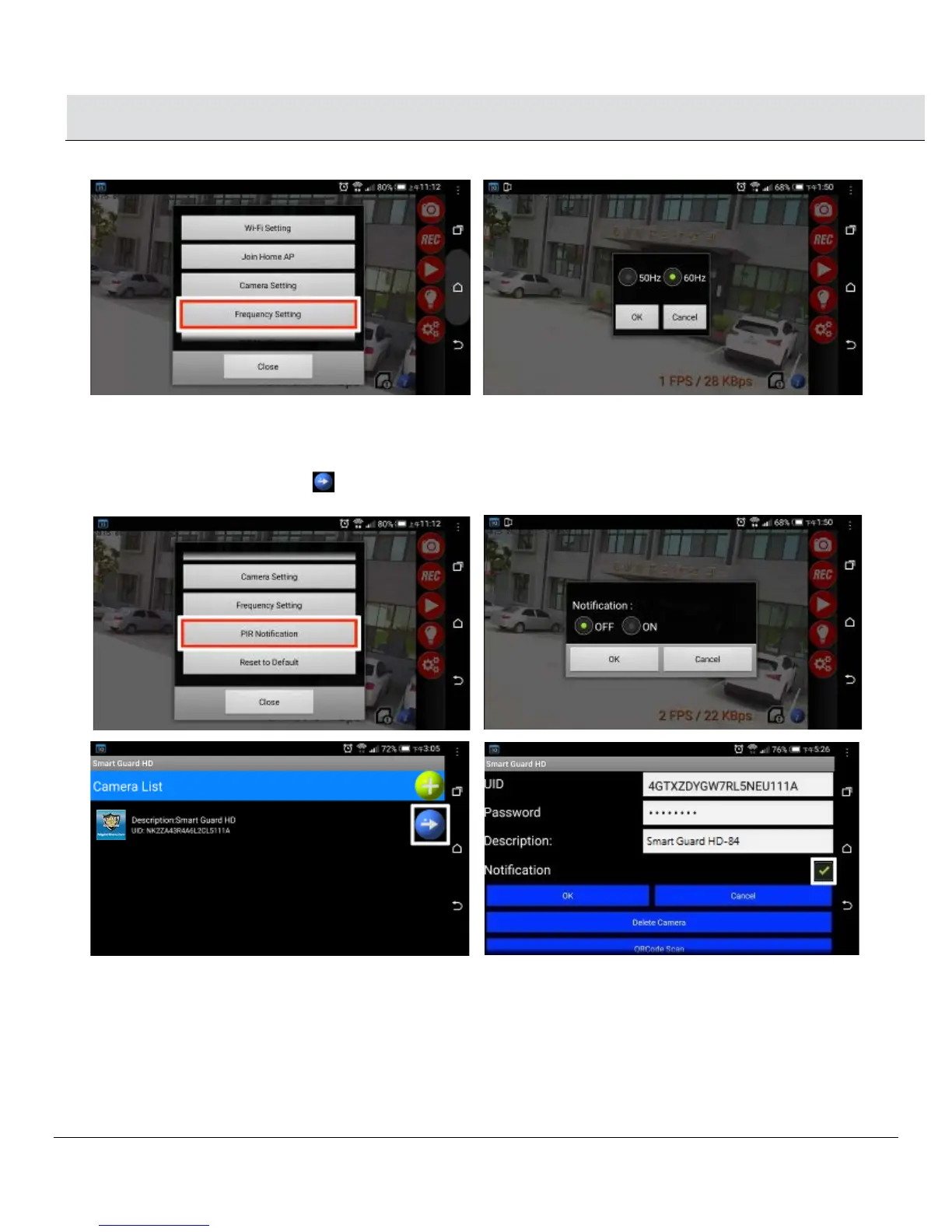 □ You also can go to Camera List and press “ →” for the selected camera. Clicking “Notification” will also send the PIR