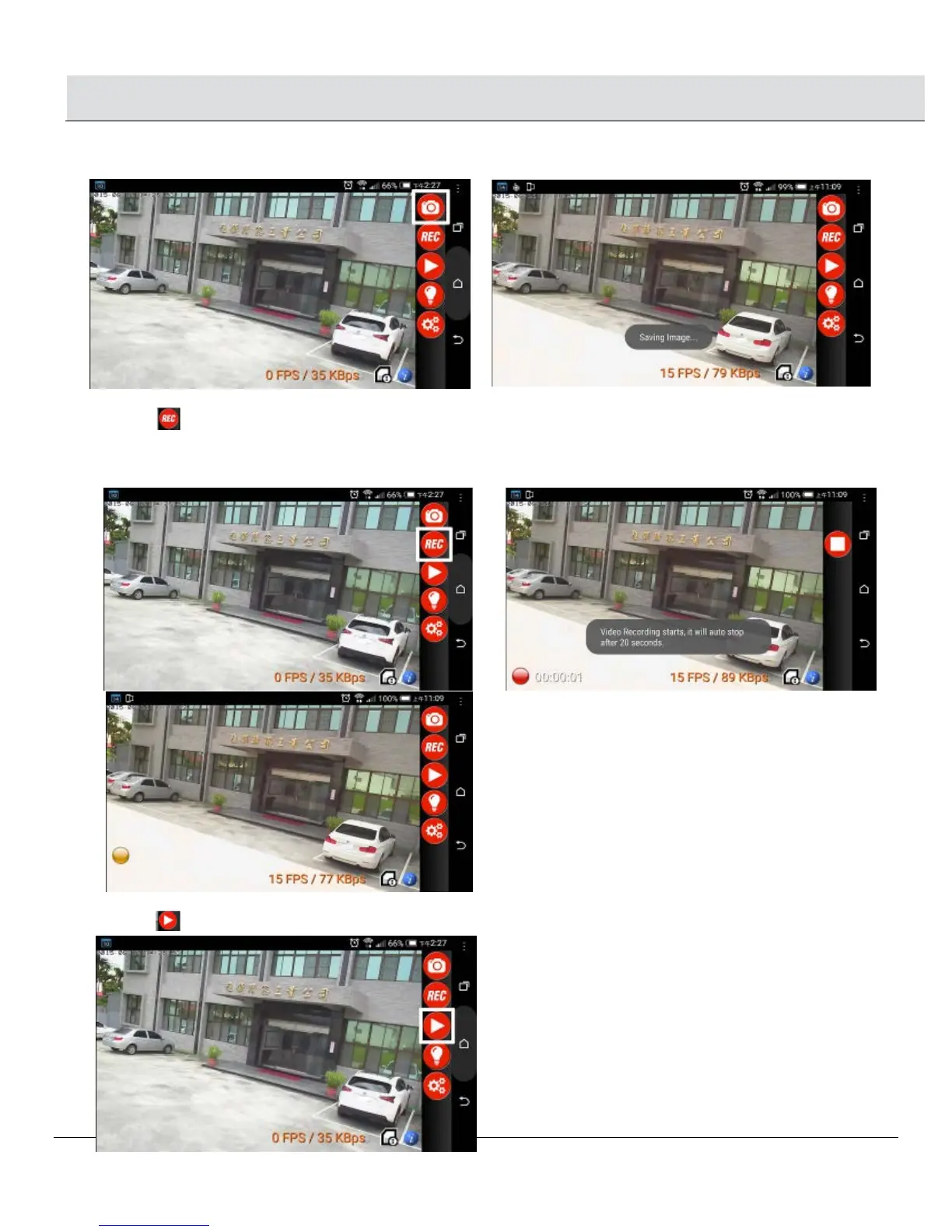 2.1 SNAP SHOT: Take one still picture for each snap shot and picture will be saved to your smart phone.
