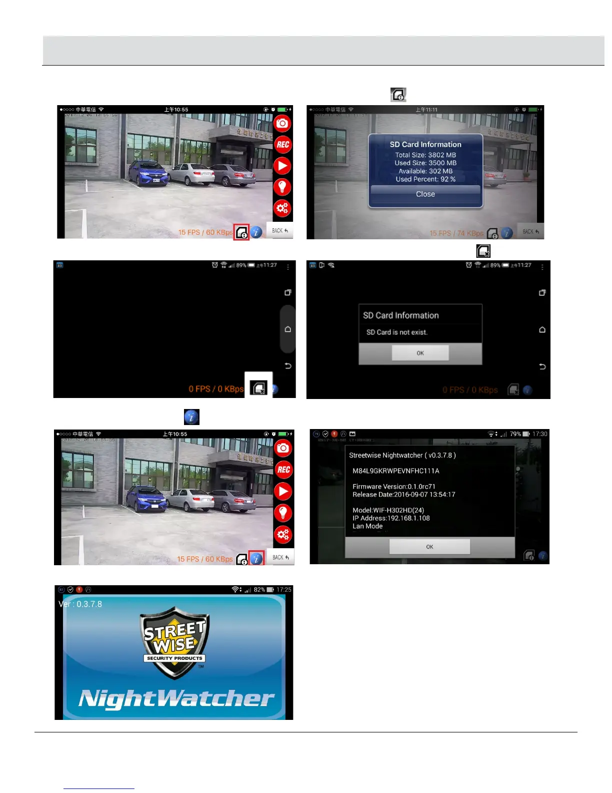 • If there is an micro card inside the NightWatcher, the screen will show this icon