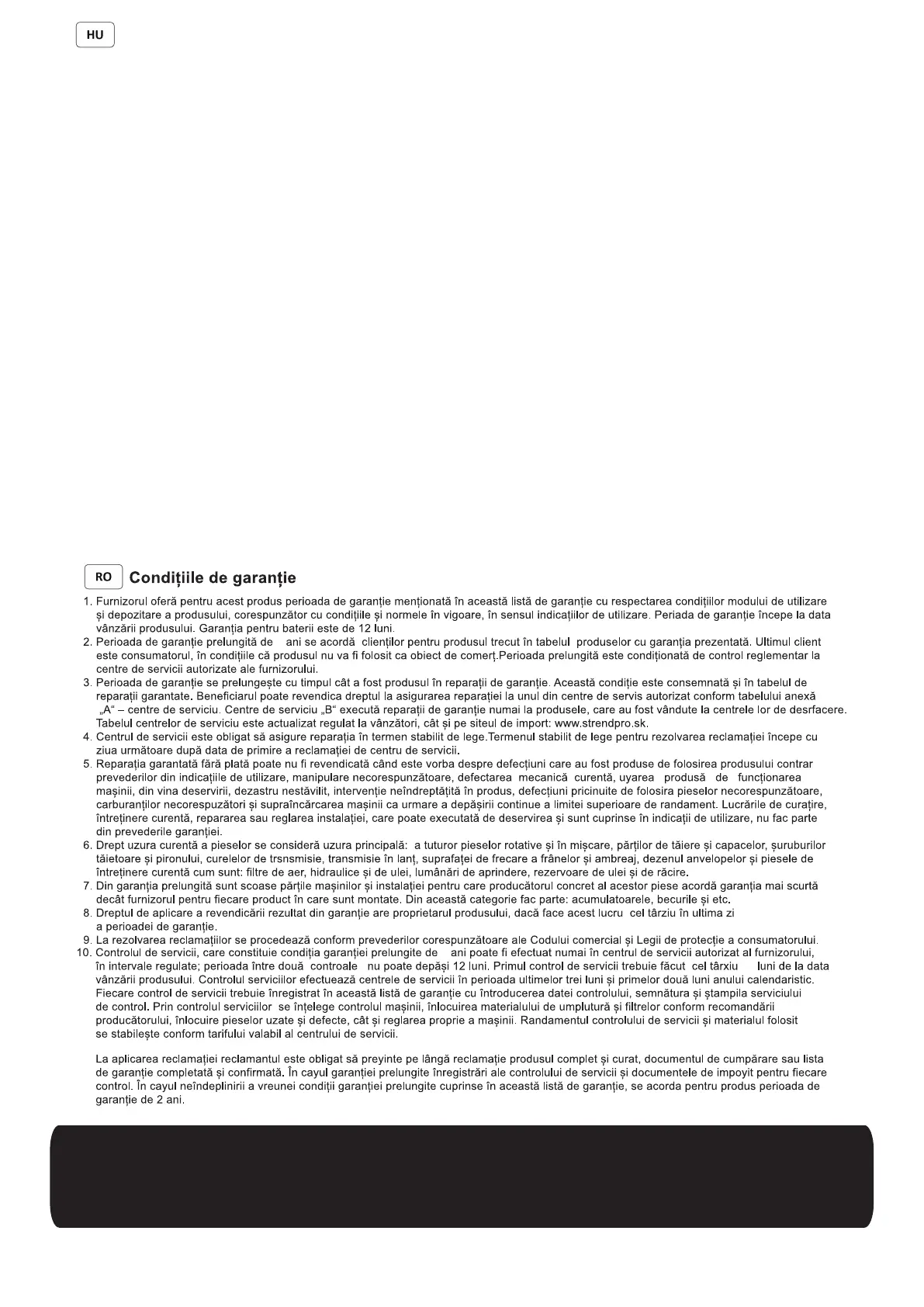 használó a vevő, es nemlesz használva kereskedelmi célokra. A kiterjesztett jótállás rendszeres szervizellenőrzést igényel a szállító hivatalos