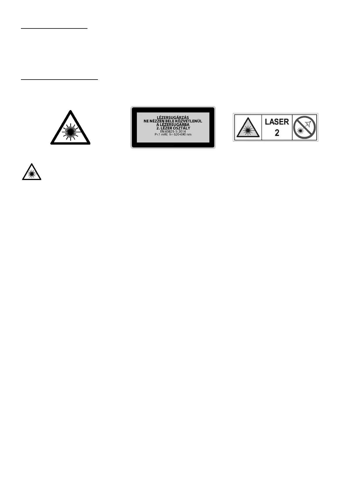 A készülék sugárzást bocsát ki, amely az EN 60825-1 szabvány II. A lézersugárzás súlyos