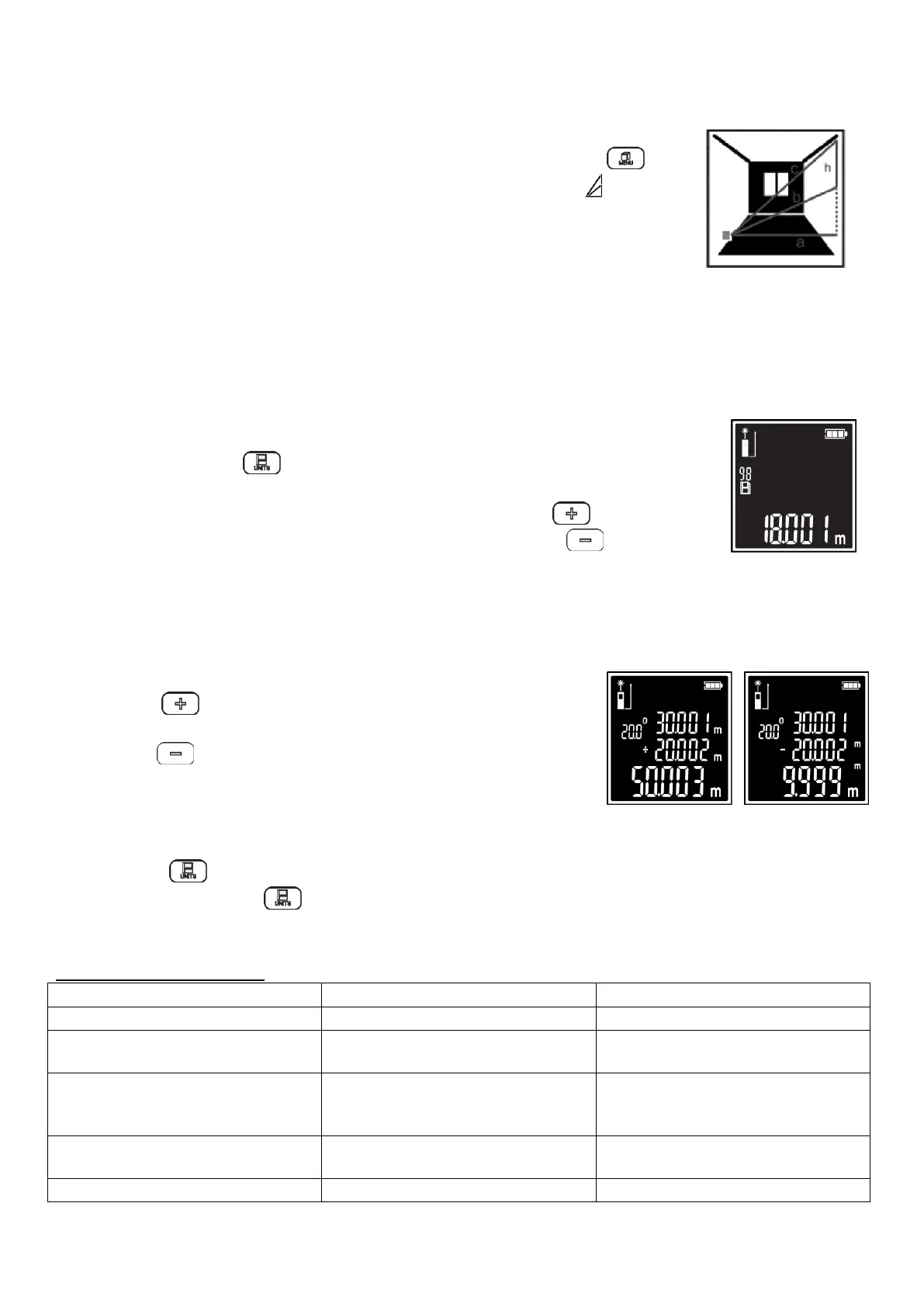 - Ha a mérés befejeződött, a "h" magasság eredményét a kijelző alján mutatjuk be.