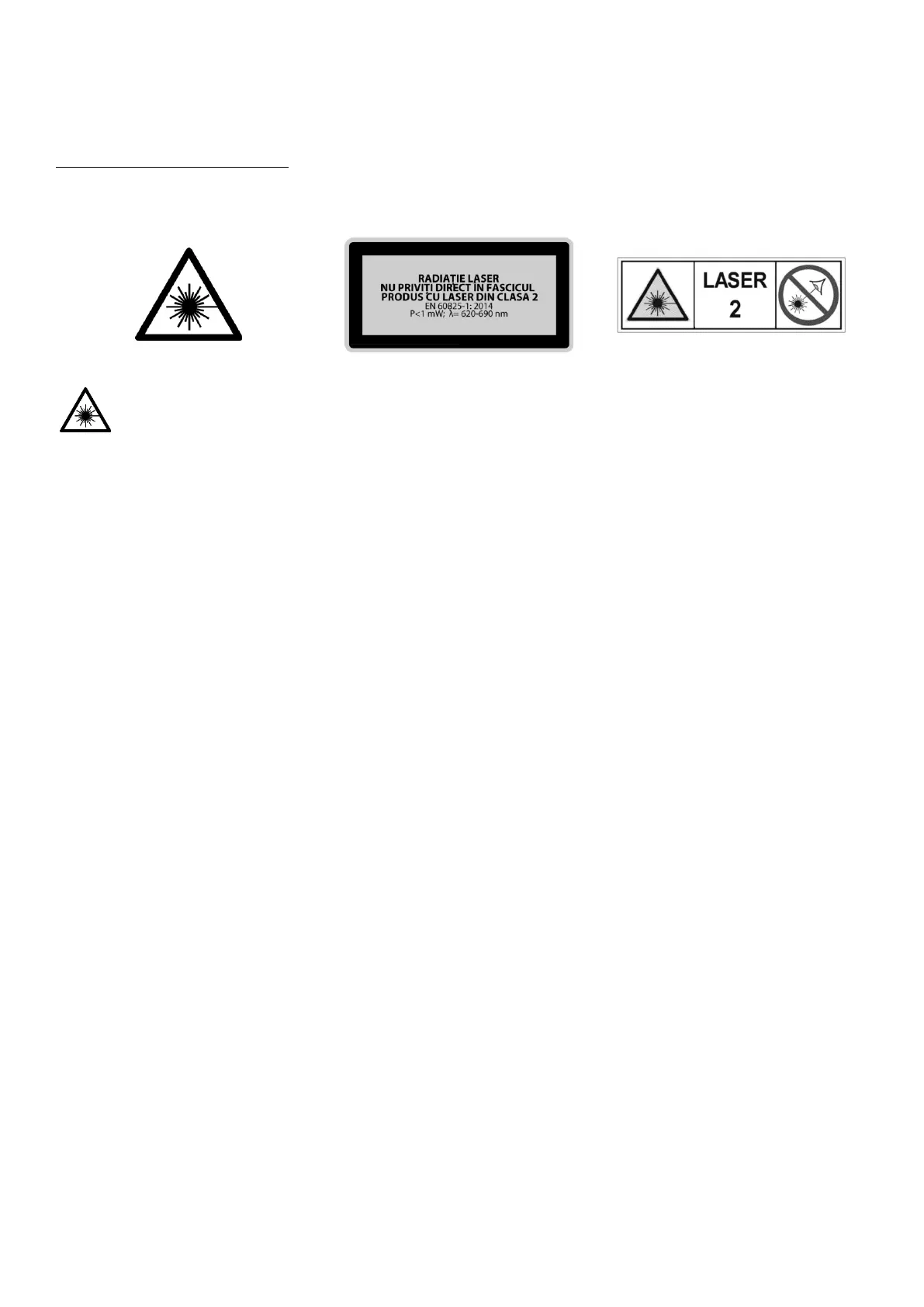 - Nu direcționați raza laser către persoane sau animale și nu priviți niciodată raza laser directă sau