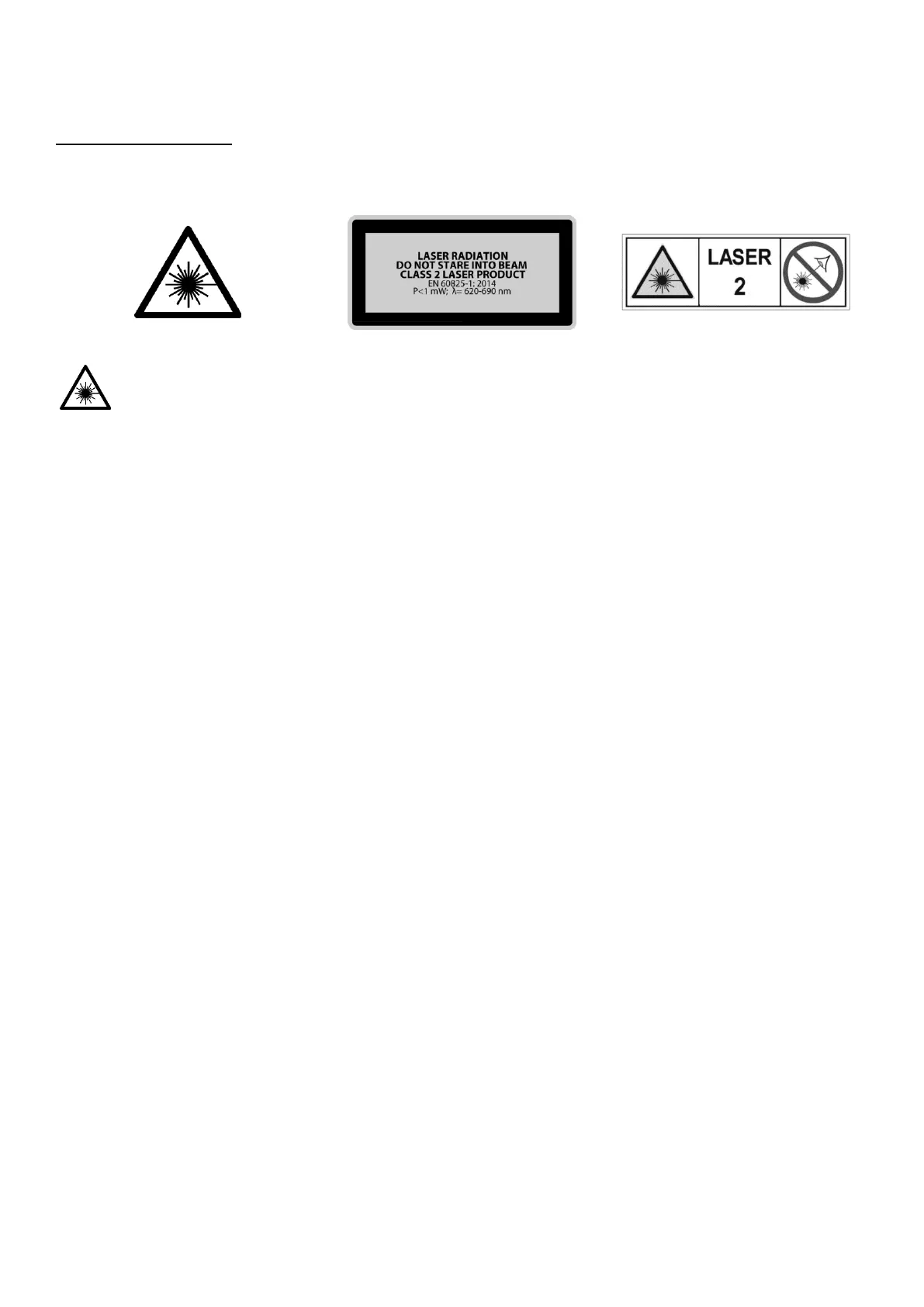 - Do not direct the laser beam at persons or animals and do not stare into the direct or reflected laser