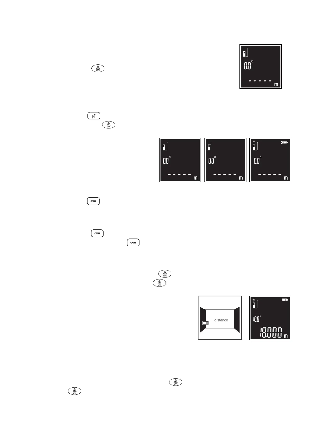 merača. Krátke stlačenie tlačidla , zobrazí na displeji ukazovateľ laseru a vzdialenosti a ukazovateľ
