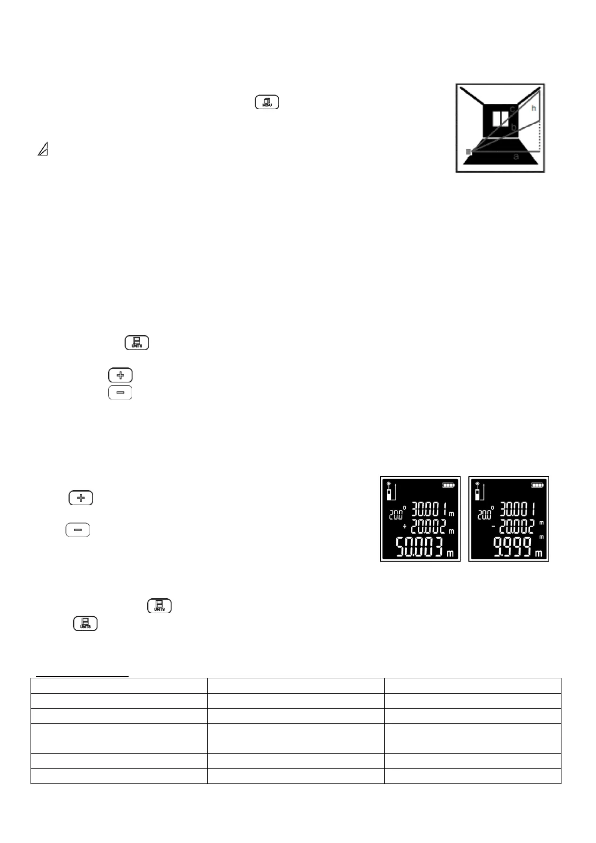 Press and hold button , the unit will change from „m” (meter) to „ft” (foot). Pressing and holding