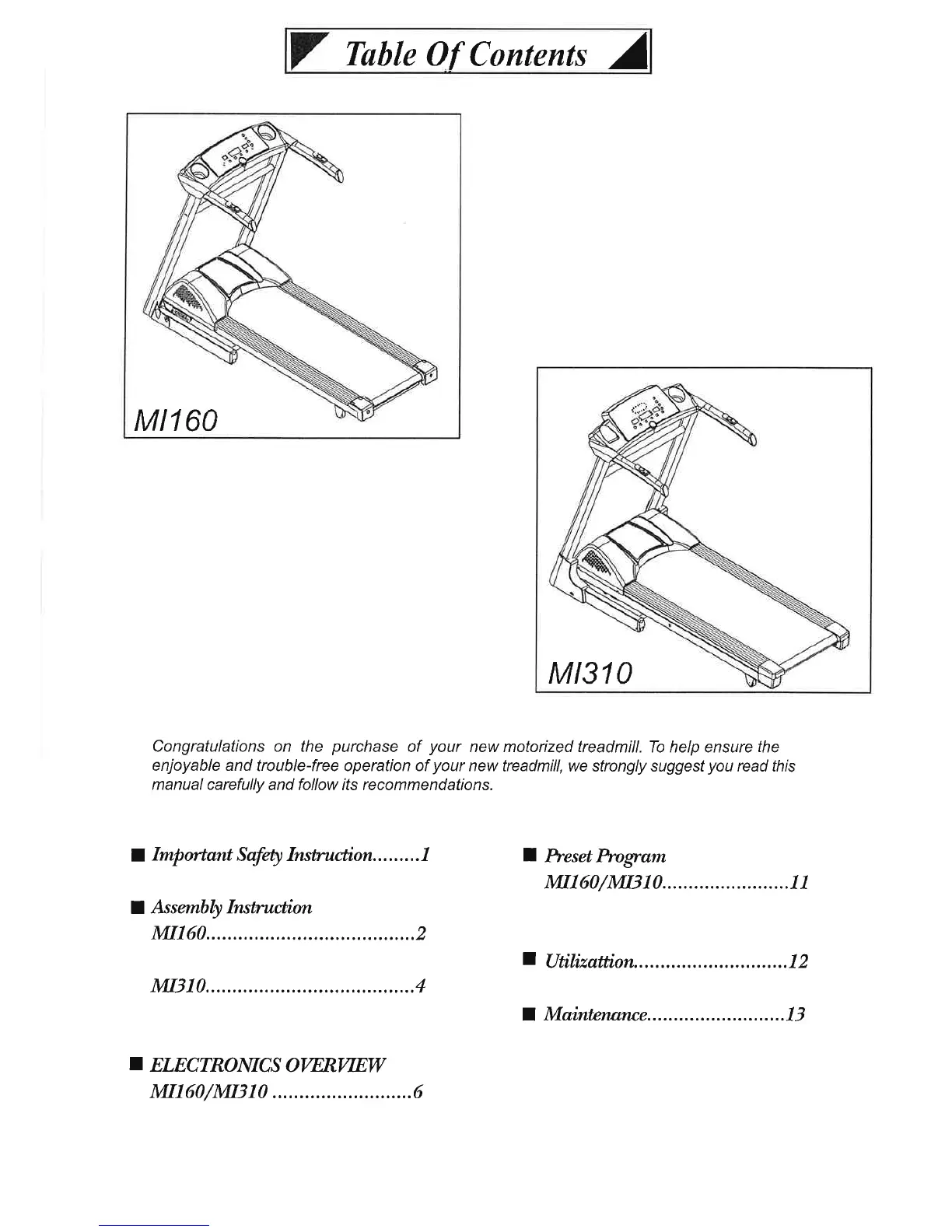 strength master MI160 - Table of Contents