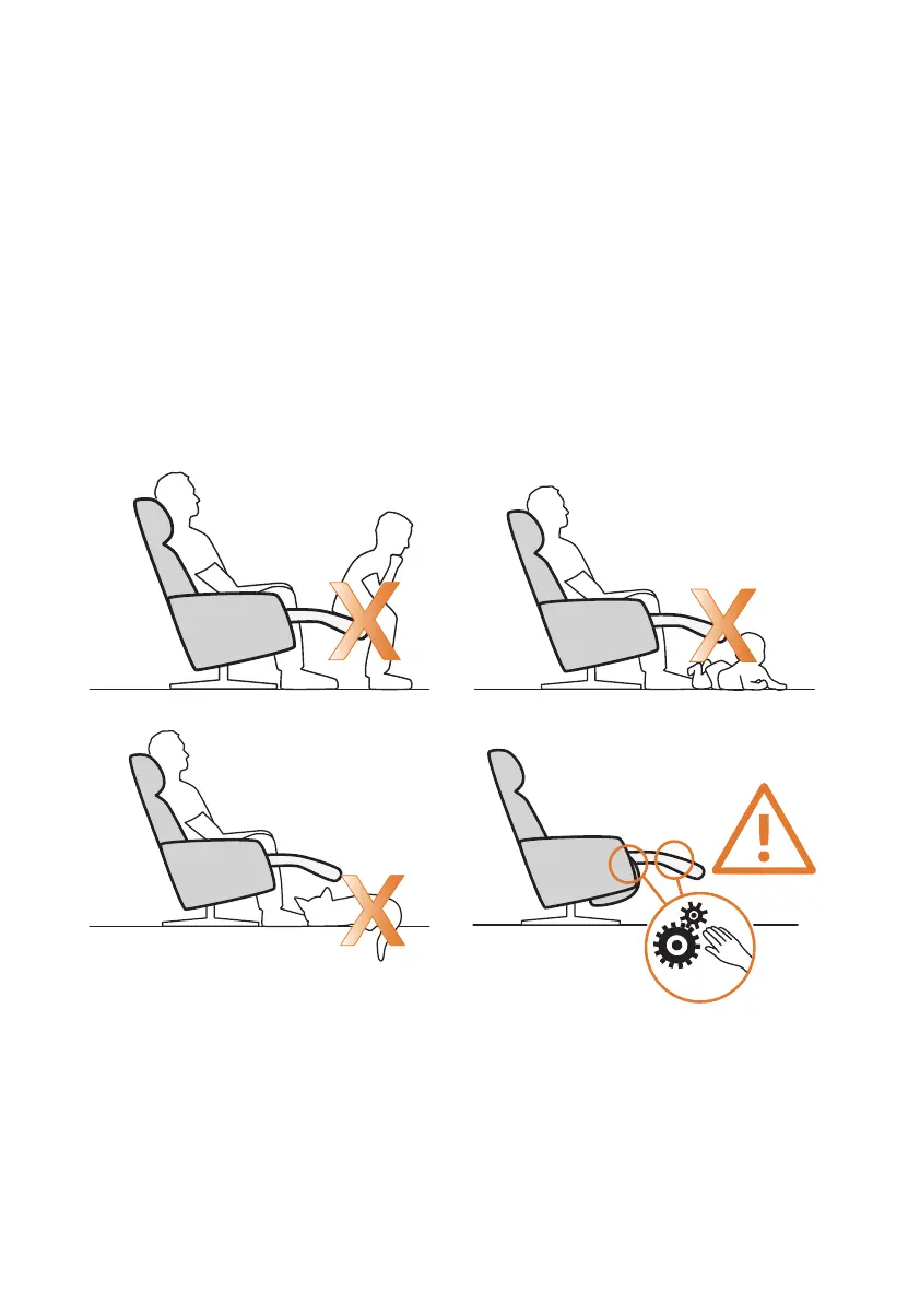 • Pohištvo na motorni pogon vsebuje več premičnih delov, ki lahko povzročijo hude poškodbe.