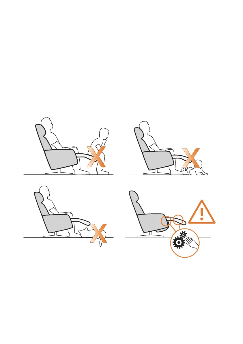 • Motordrivna möbler har era rörliga delar som kan orsaka betydande skada. Rör ej och låt inga