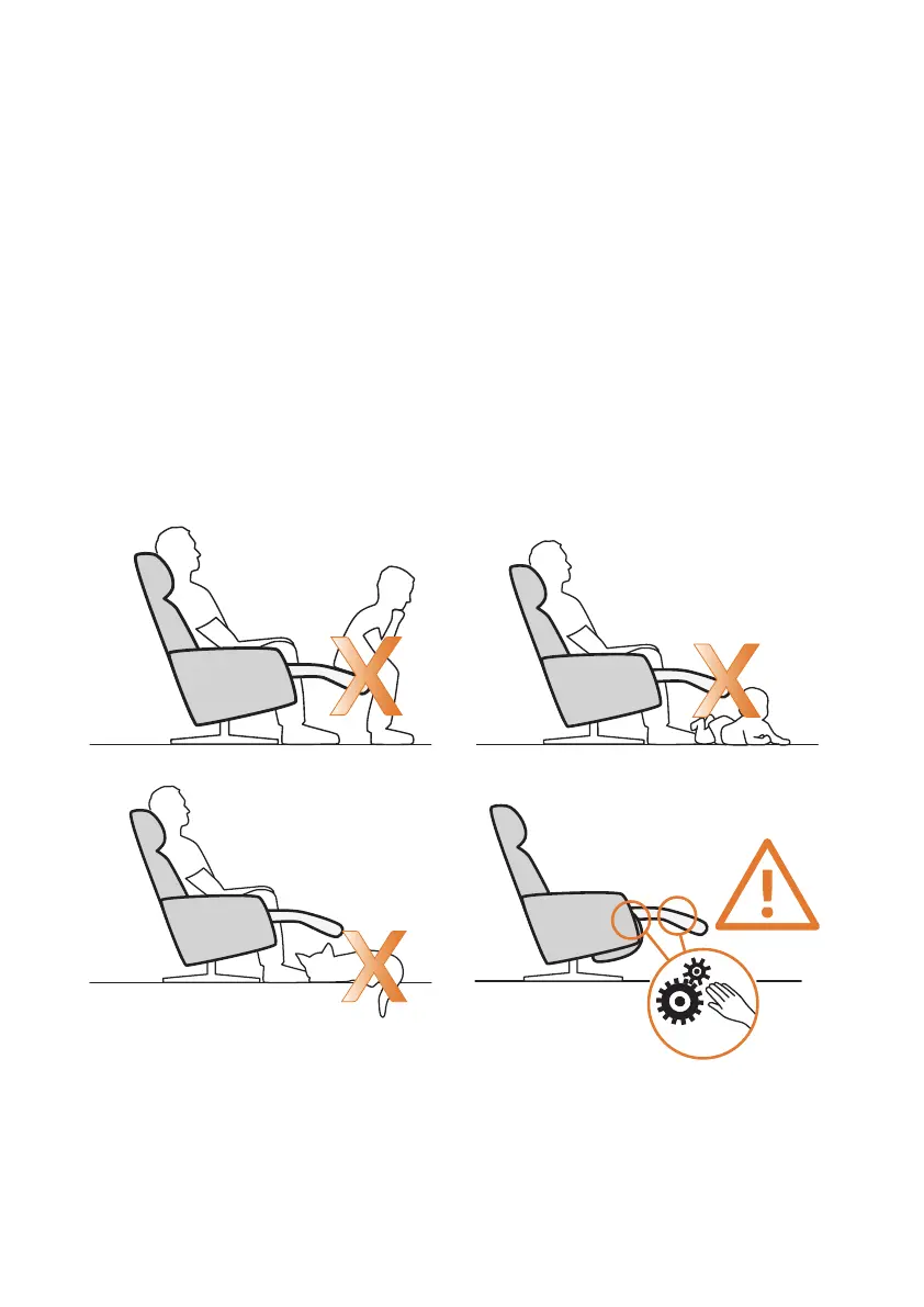 • Motorized furniture has several moving parts that can cause serious injury. Do not touch or