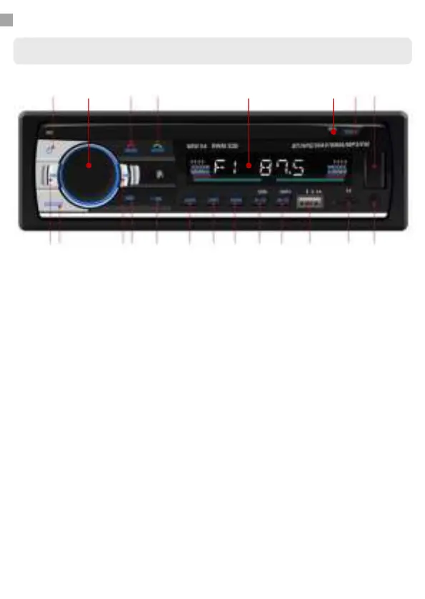 7. Station geheugen 1-6 voor Radio en Play/Pause Functie voor MP3/WMA