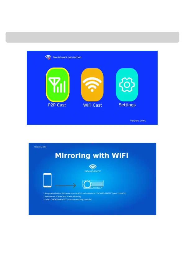2. Volg de stappen op het scherm om “Mirroring with WiFi” (directe