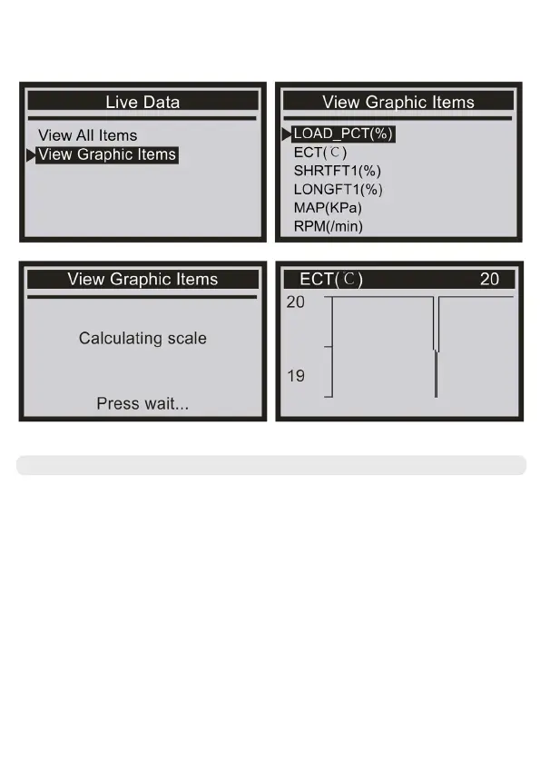 Selecteer [View Graphic Items] in het Live Data-menu en druk op ENTER. Het scherm geeft de