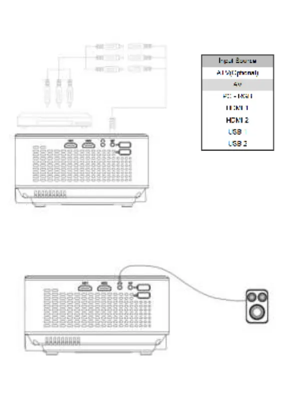 Use AV cable for connecting as follows, choose the “AV” source input.