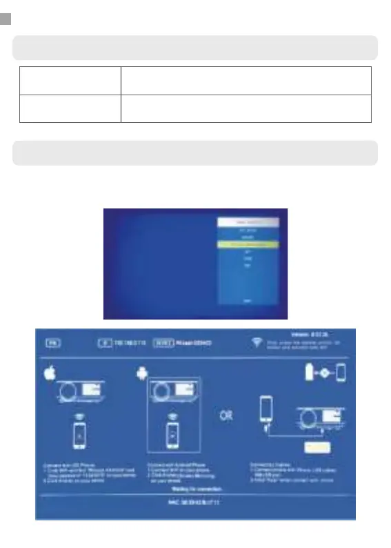 projection image. Select the input method as “Screen Mirroring”, then press “OK” to continue.
