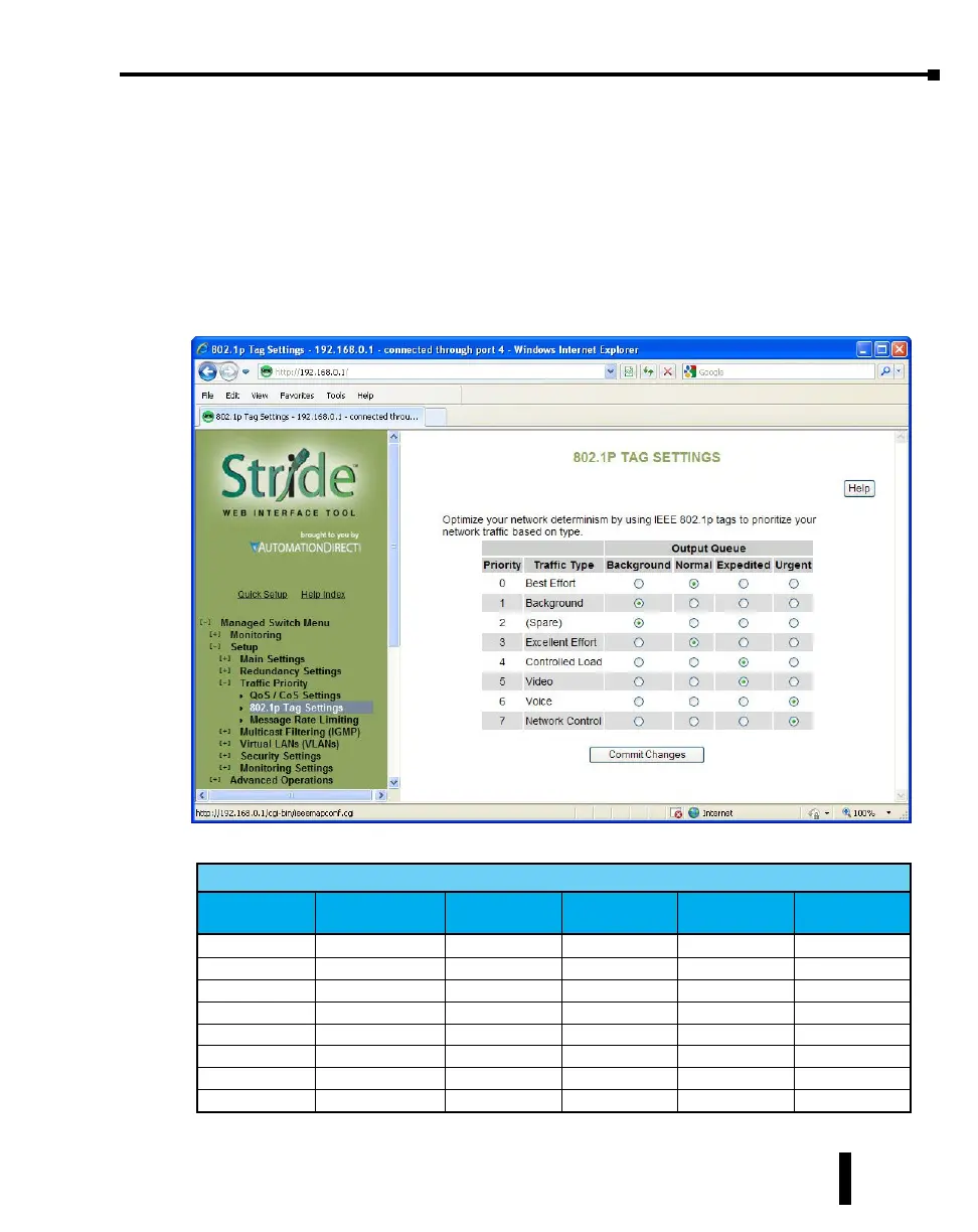 The managedswitch has four Output Queues: Background, Normal, Expedited and Urgent