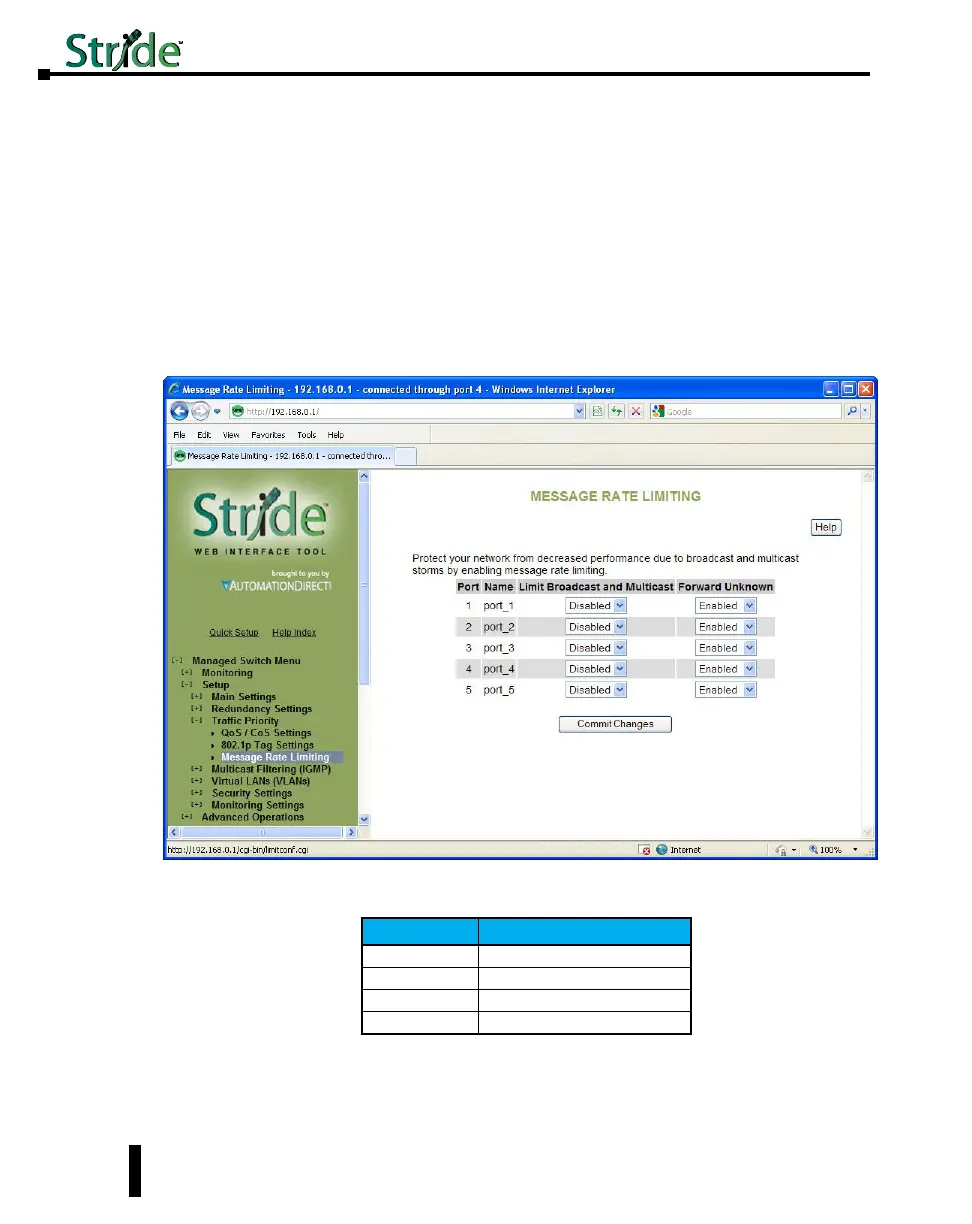 high volumes of broadcast and multicast messages. When enabled on a port, message rate