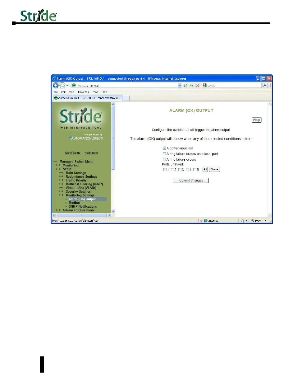 Ports Linked: An alarm condition will be triggered whenever any of the selected ports are not