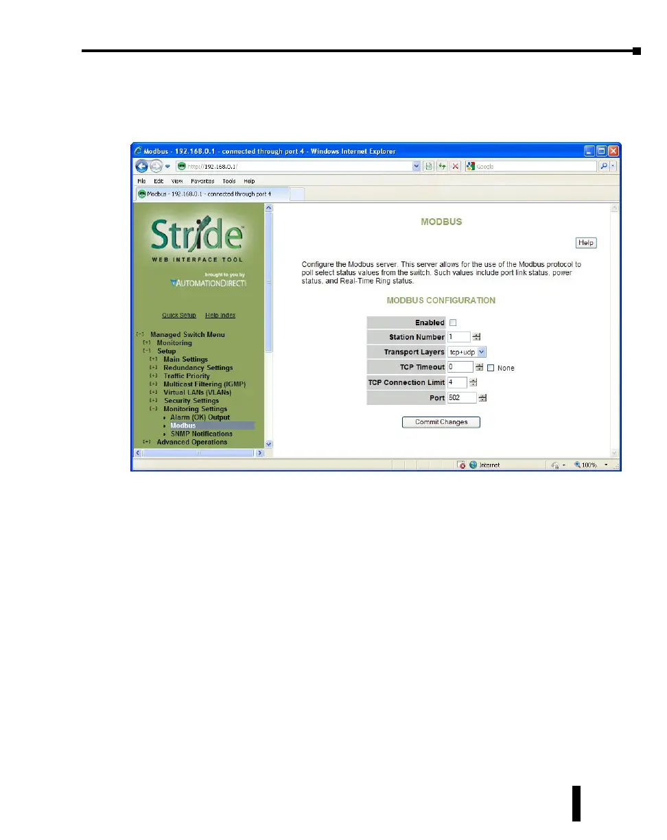 Transport Layers: The switch will respond to Modbus requests only on the chosen transport