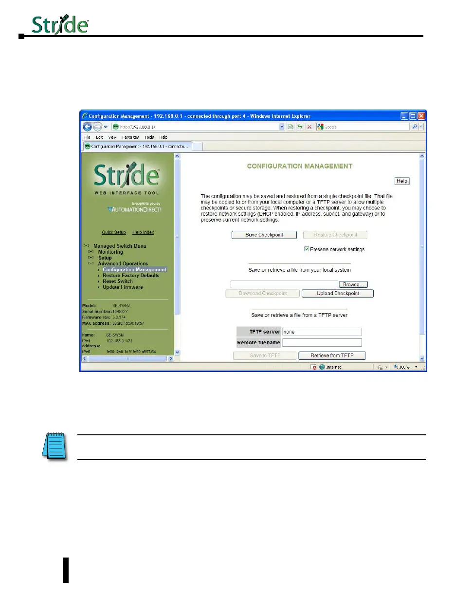 Upload Checkpoint: Unzips the selected file and stores a copy on the switch. It must be