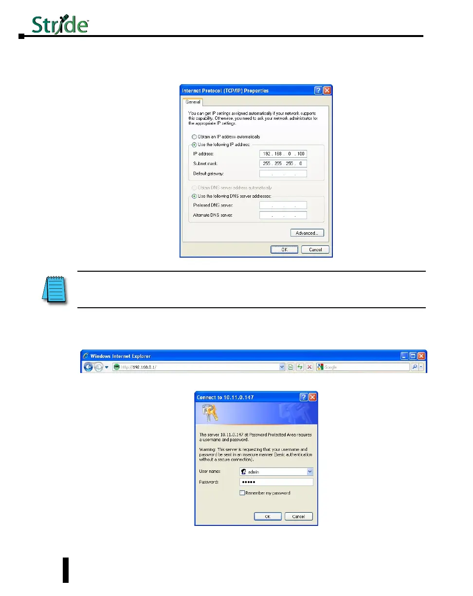 5. Type in the IP address and subnet mask of 192.168.0.100 and 255.255.255.0 or another