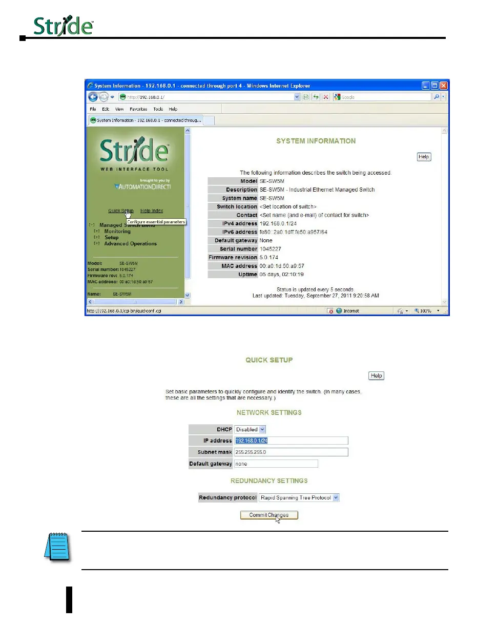 9. Click on the “Quick Setup” link on the upper left hand side of the window to access the Network
