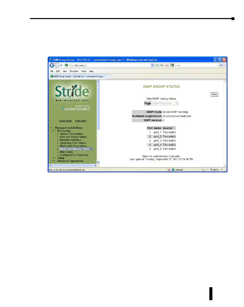 This section shows the current IGMP Multicast Filtering Status. For more information on