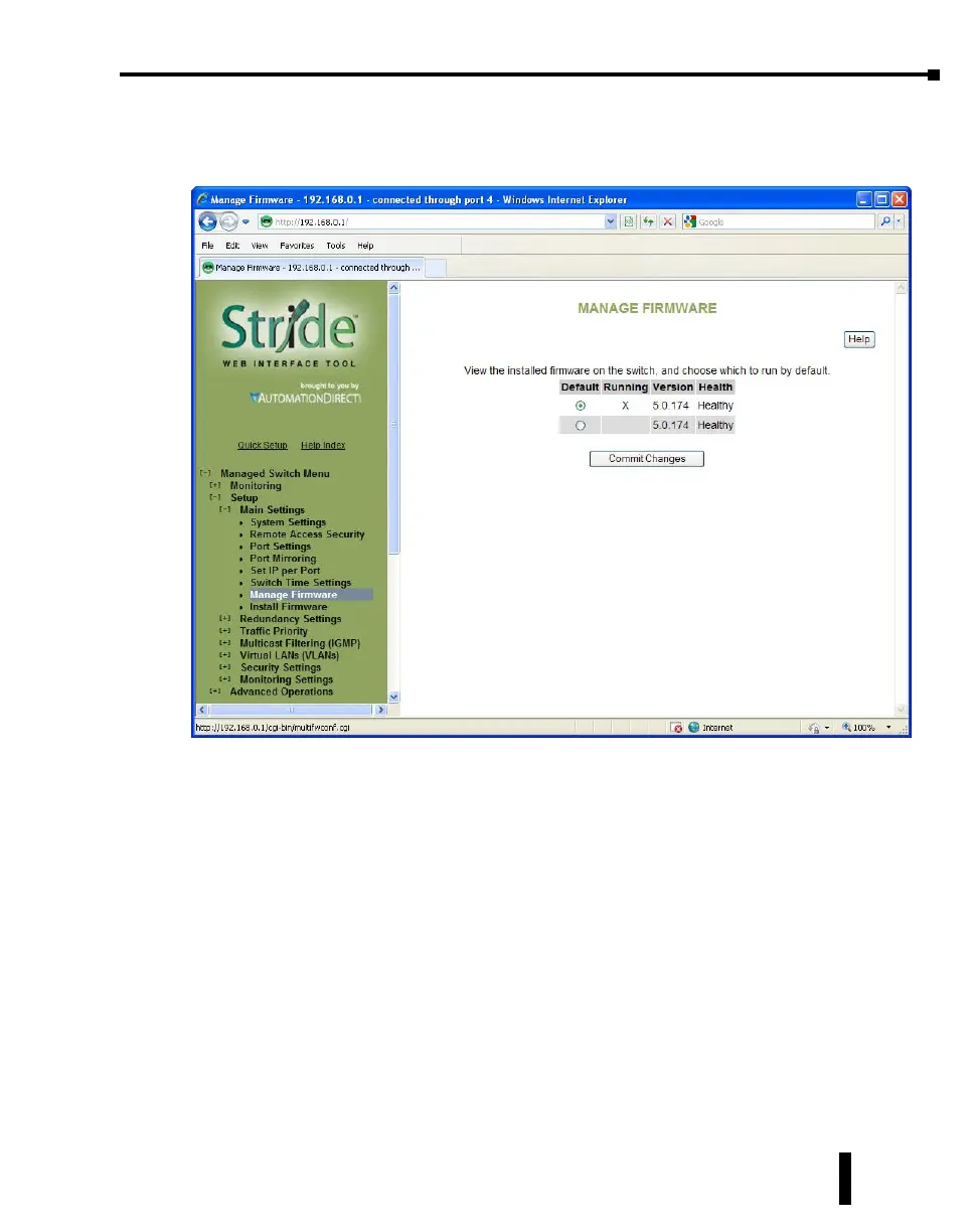 explicitly saving the default (“Commit Changes”), the current firmware will be run again. To