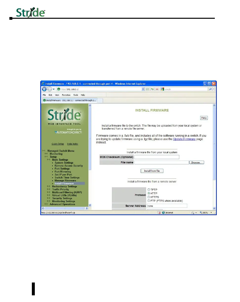 Firmware may also be uploaded to the switch from a remote machine serving the .fwb