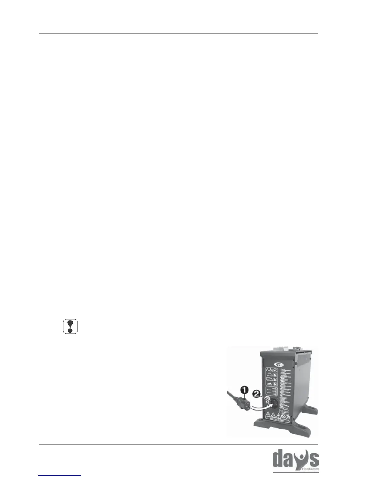 Plug the mains cable plug (1) into the