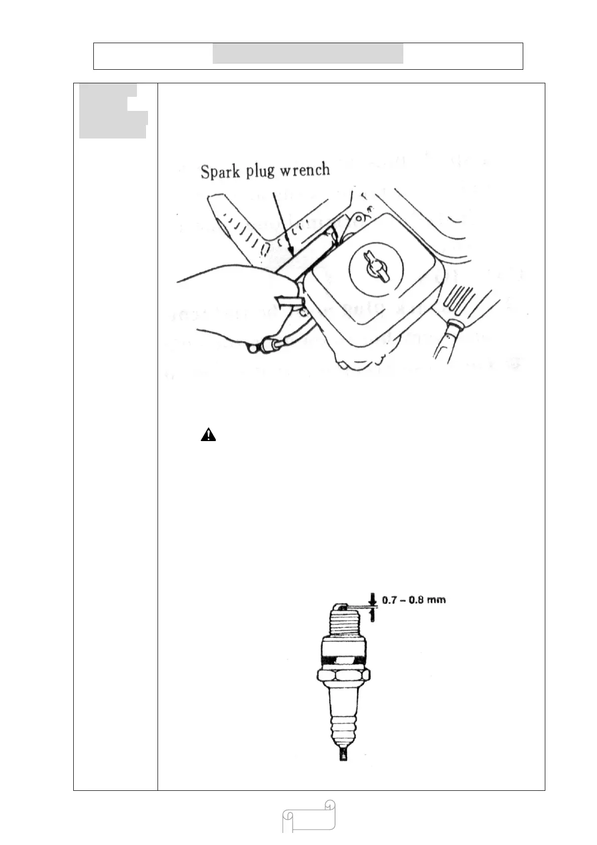 up by a spark plug wrench. If a new spark plug is used, twist 1/2 more turns