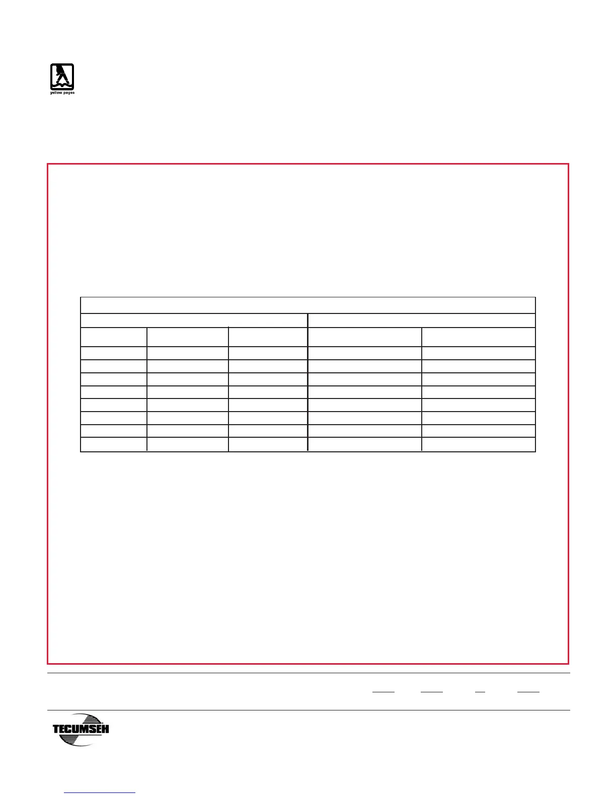 CHART ABOVE AND TO THE EXTENT PERMITTED BY LAW ANY AND ALL IMPLIED WARRANTIES ARE EXCLUDED. IN NO EVENT WILL TECUMSEH BE
