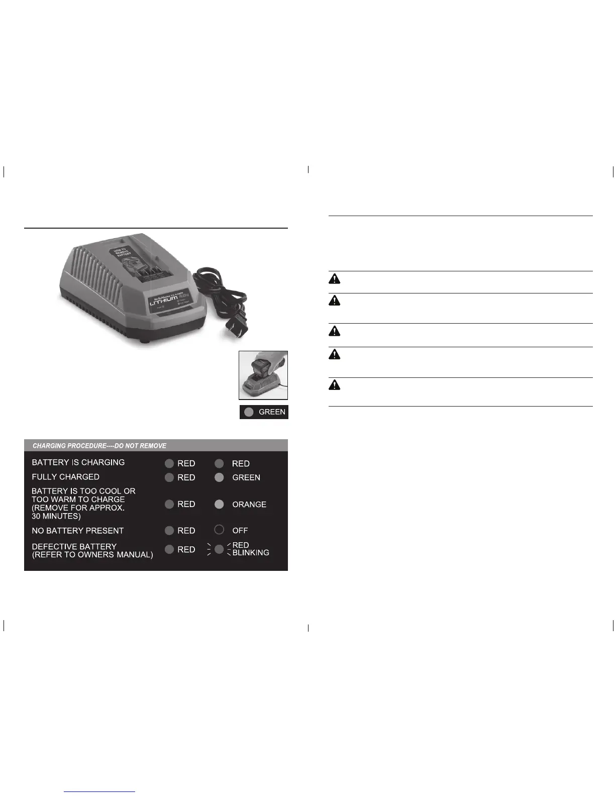 • Do not operate charger if it has received a sharp blow, been dropped, or otherwise damaged in any way. Take