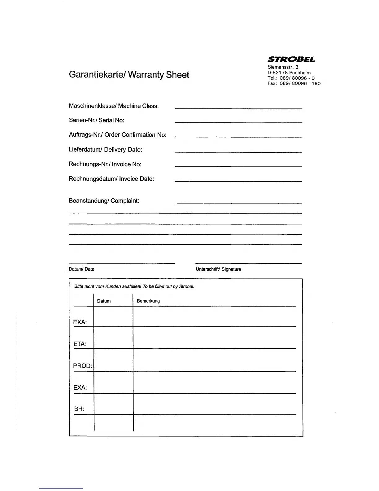 Strobel 141-23 - Garantiekarte; Warranty Sheet