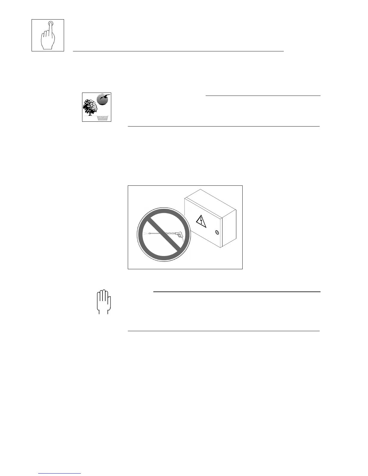 Do not clean the control cabinet or the engine with pressurised