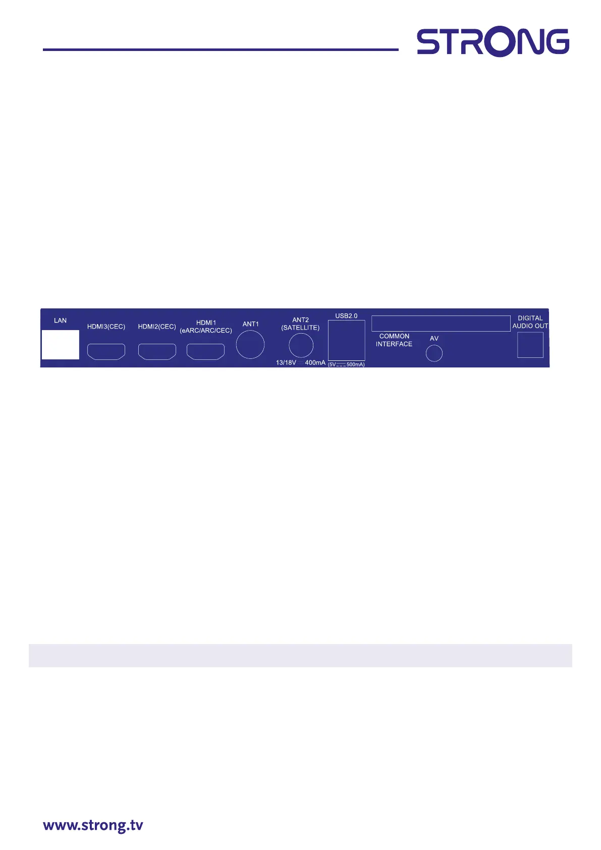 5. ANTENNA IN 1 Connect a coaxial cable to receive signal from the DVB-T/T2 antenna or DVB-C cable.