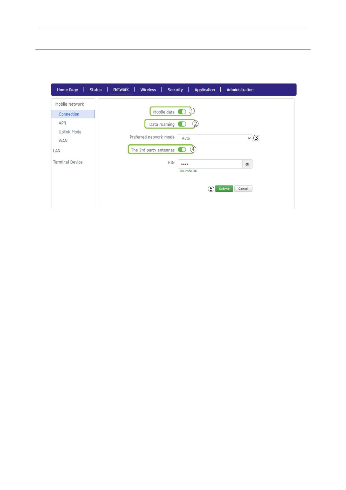 You can see the preferred mobile network, PIN Code and if mobile data and data roaming and 3