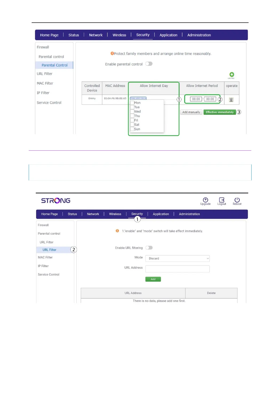 Enable URL Filtering toggle button. Then select the mode and enter the URL Address