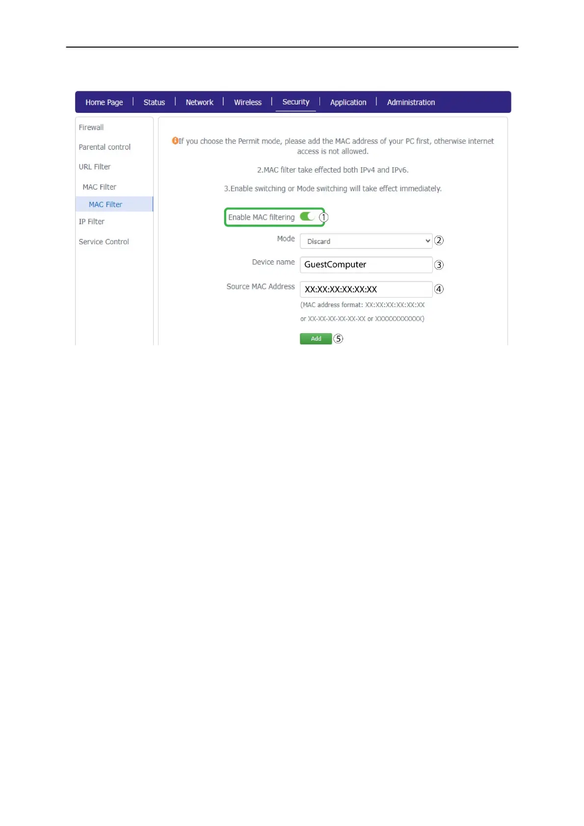 MAC Address. Once this is done, click Add.