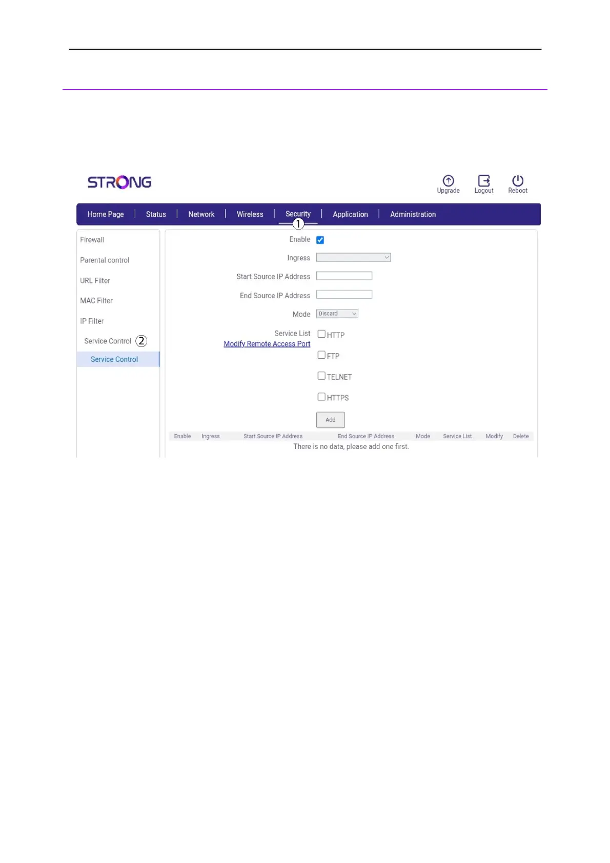 Address. Once this is done, choose the mode between discard or allow and the type of service in