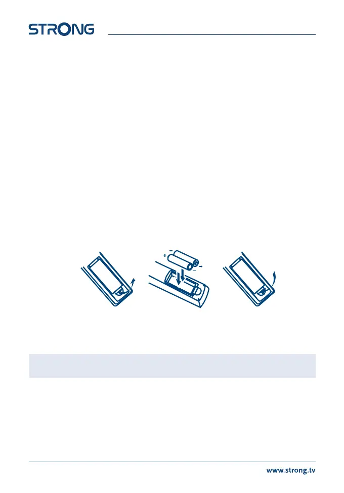 Remove the battery cover from the remote control by sliding it downwards and put 2x AAA size batteries inside the