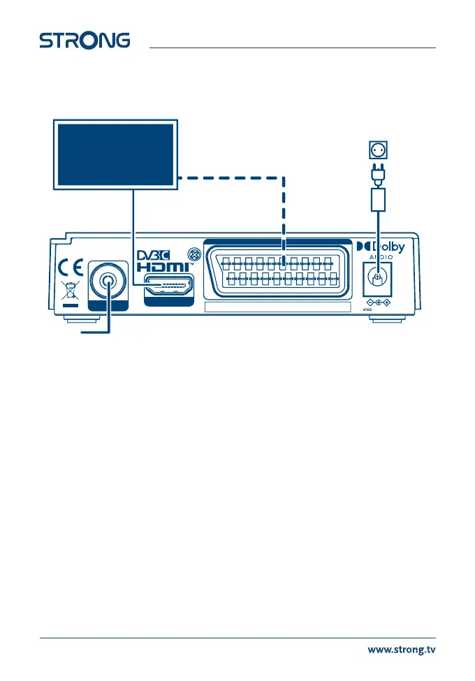 b. Connect one end of a good quality Scart cable to the TV SCART connector on your receiver and the other end to