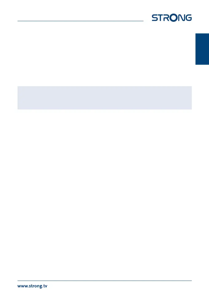 backups of data on your USB storage device before using it with this receiver. STRONG will not take responsibility