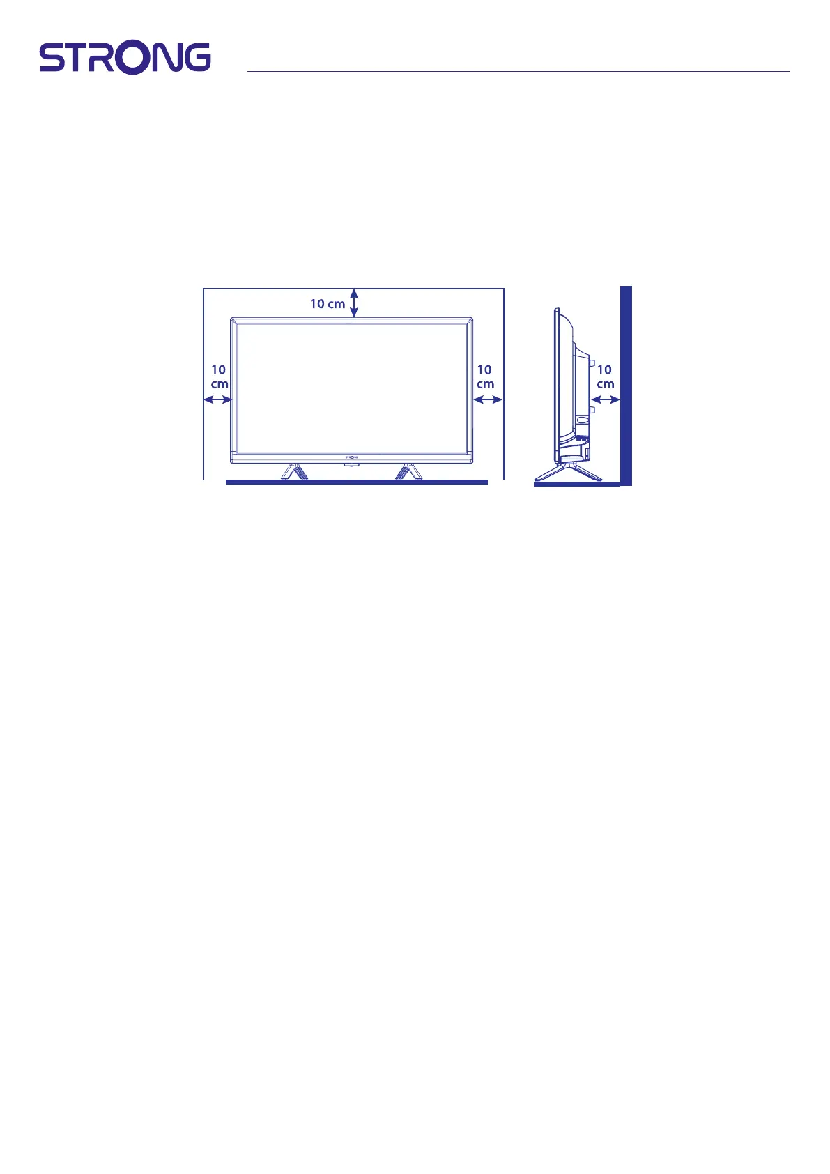 Install the display on a solid horizontal surface such as a table or desk. For ventilation, leave a space of at least 10 cm free all