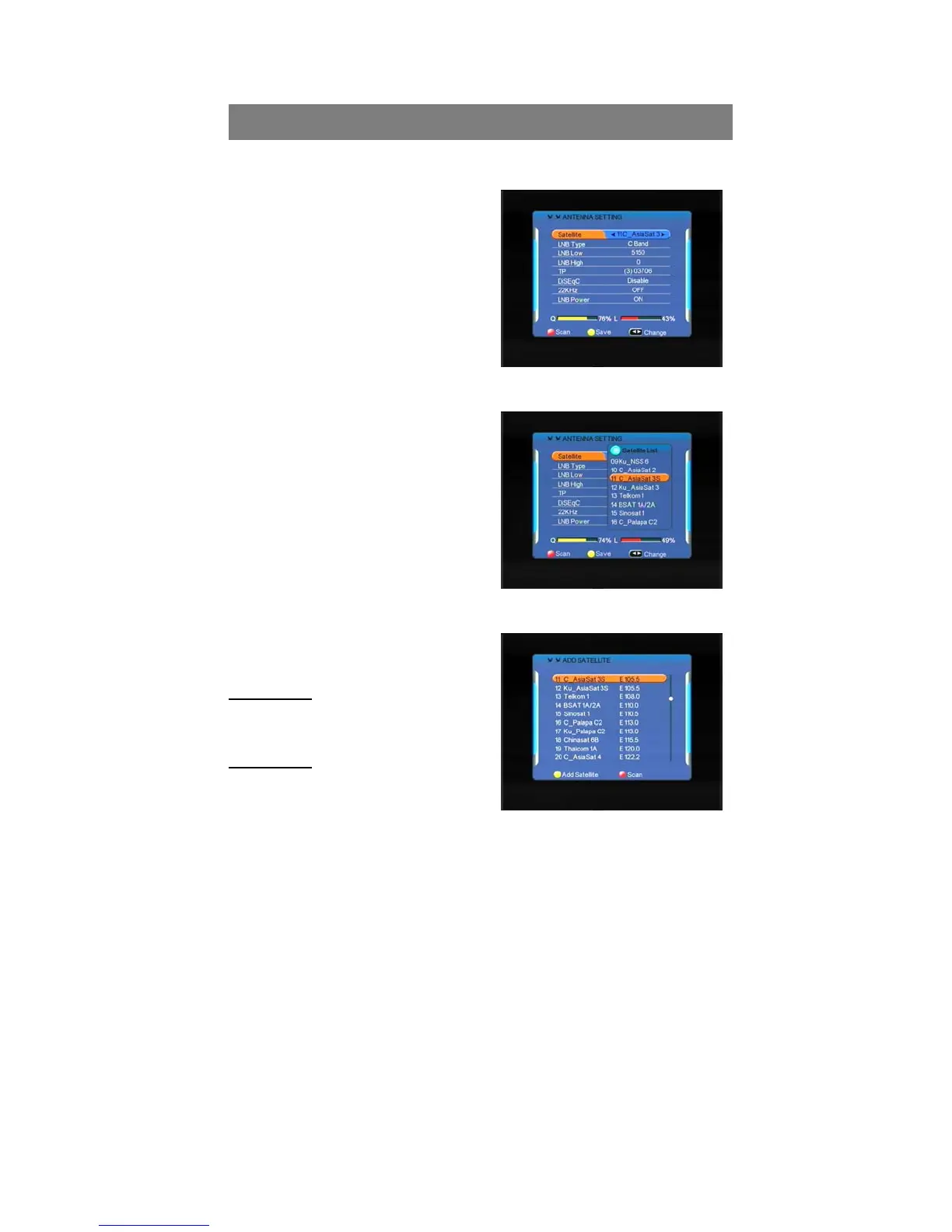 Selecting your installed Satellite on the