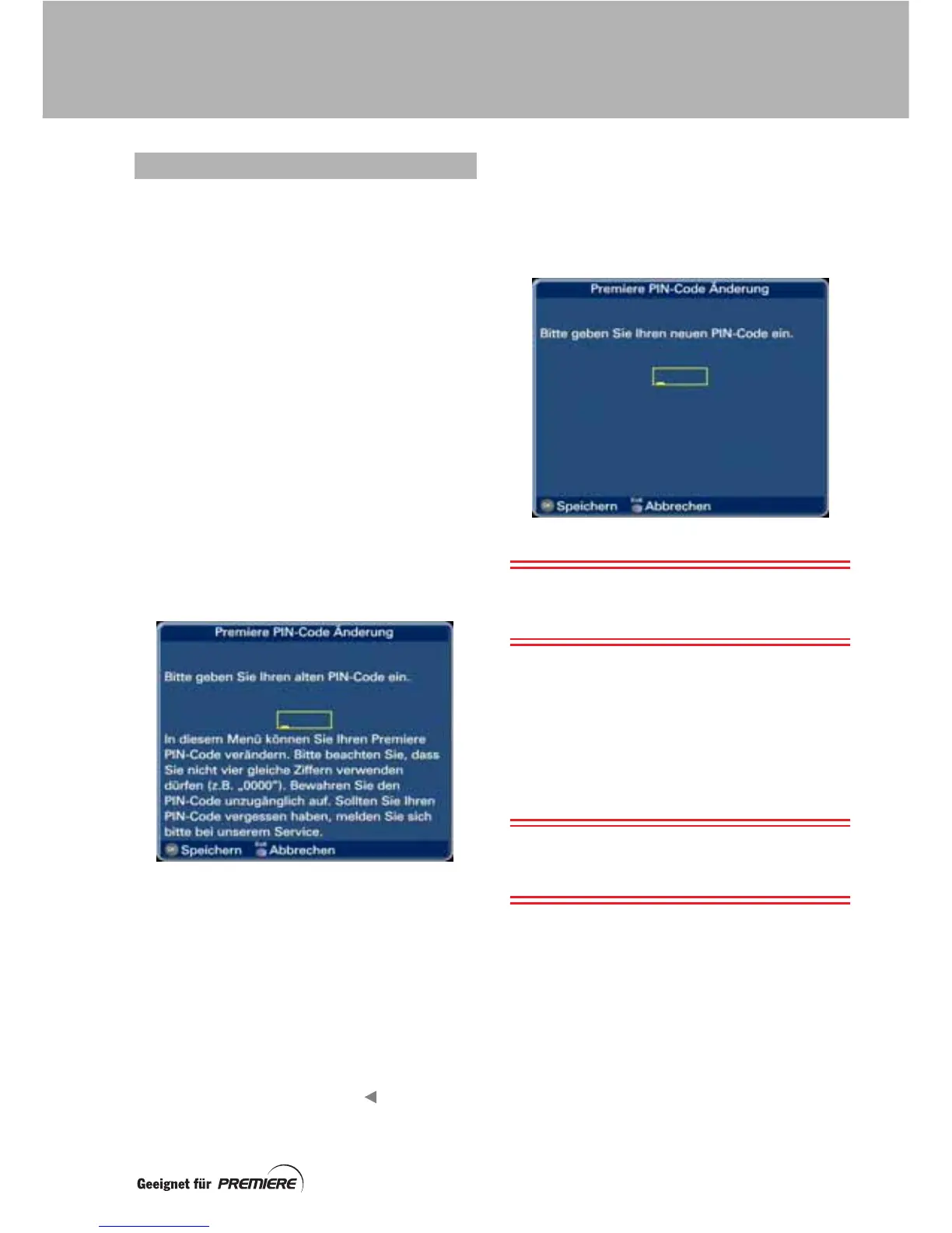 Reihe Premiere PIN-Code Änderung wird